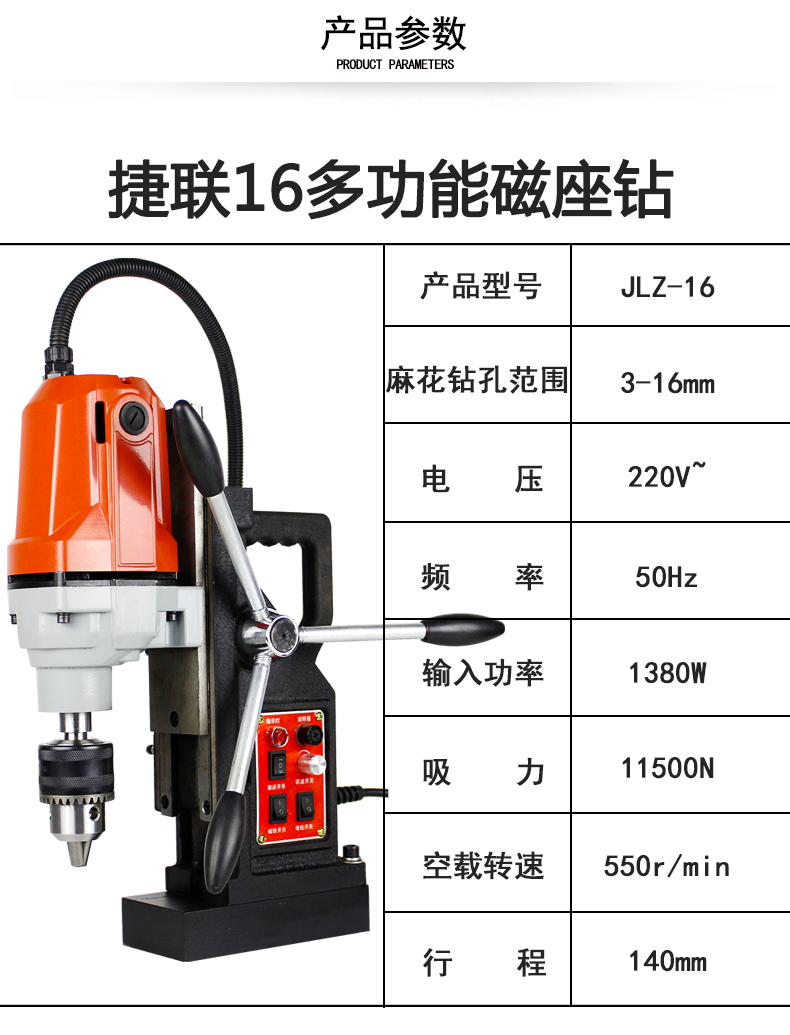 388vip太阳集团磁座钻磁力钻吸铁钻空心钻开孔钻正反转无极/档位调速JLZ-16
