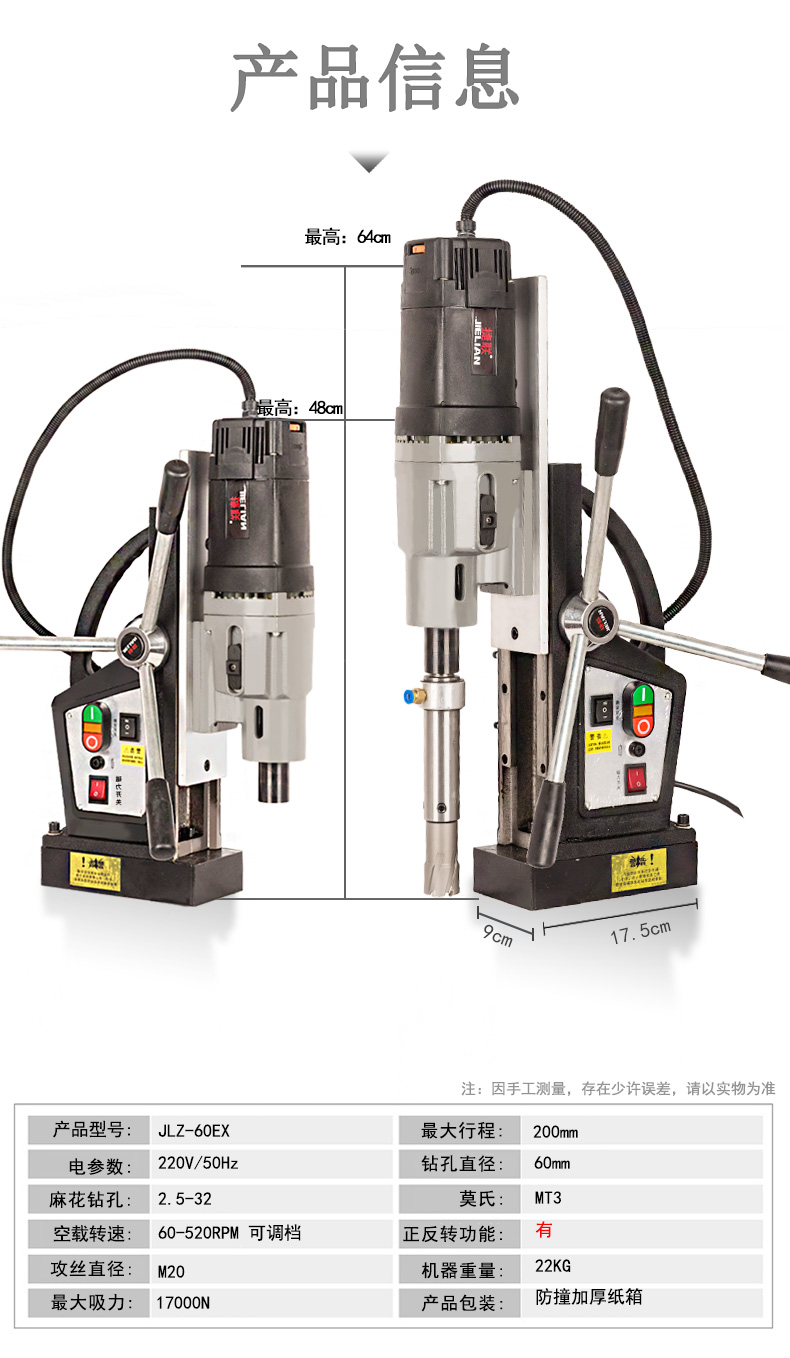 388vip太阳集团磁座钻磁力钻吸铁钻空心钻开孔钻正反转无极/档位调速JLZ-16